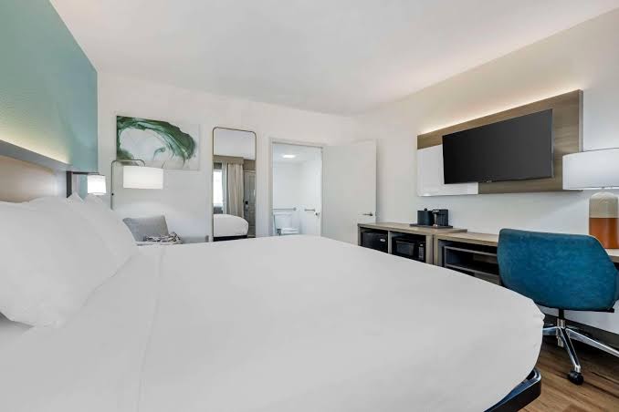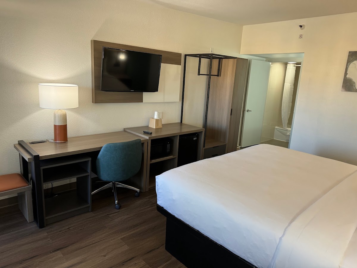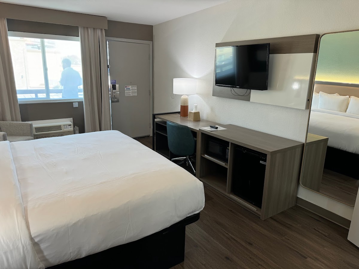 5 stars may seem high for a budget hotel, but I often stay in budget hotels and this was top tier in my opinion when compared to other hotels of comparable price. I chose Comfort Inn purely for it's proximity to SOMA. I was driving in from LA for a concert and just needed a place to crash for the night to avoid driving home in the middle of the night. I wanted something cheap and if possible within walking distance. Check and Check. But after staying here I would choose and recommend this hotel for anyone looking for somewhere affordable to stay in San Diego. The rooms are newly updated. The rooms were very clean, no weird stains or cracks or damage. The bed was comfortable and the water pressure in the shower was to die for 10/10. I'd stay there again just for the shower. If you're not used to traffic noises, I live quite close to a freeway and railroad so I'm used to those kind of noises, you might find the room a little loud but honestly not too bad. I only was aware how close we were to the freeway at one point when something with sirens drove by. Also depending on which way you turn when exiting the hotel getting onto the main road can be a bit of a pain as the exit is literally the freeway exit. But again, not a big deal if you're aware.